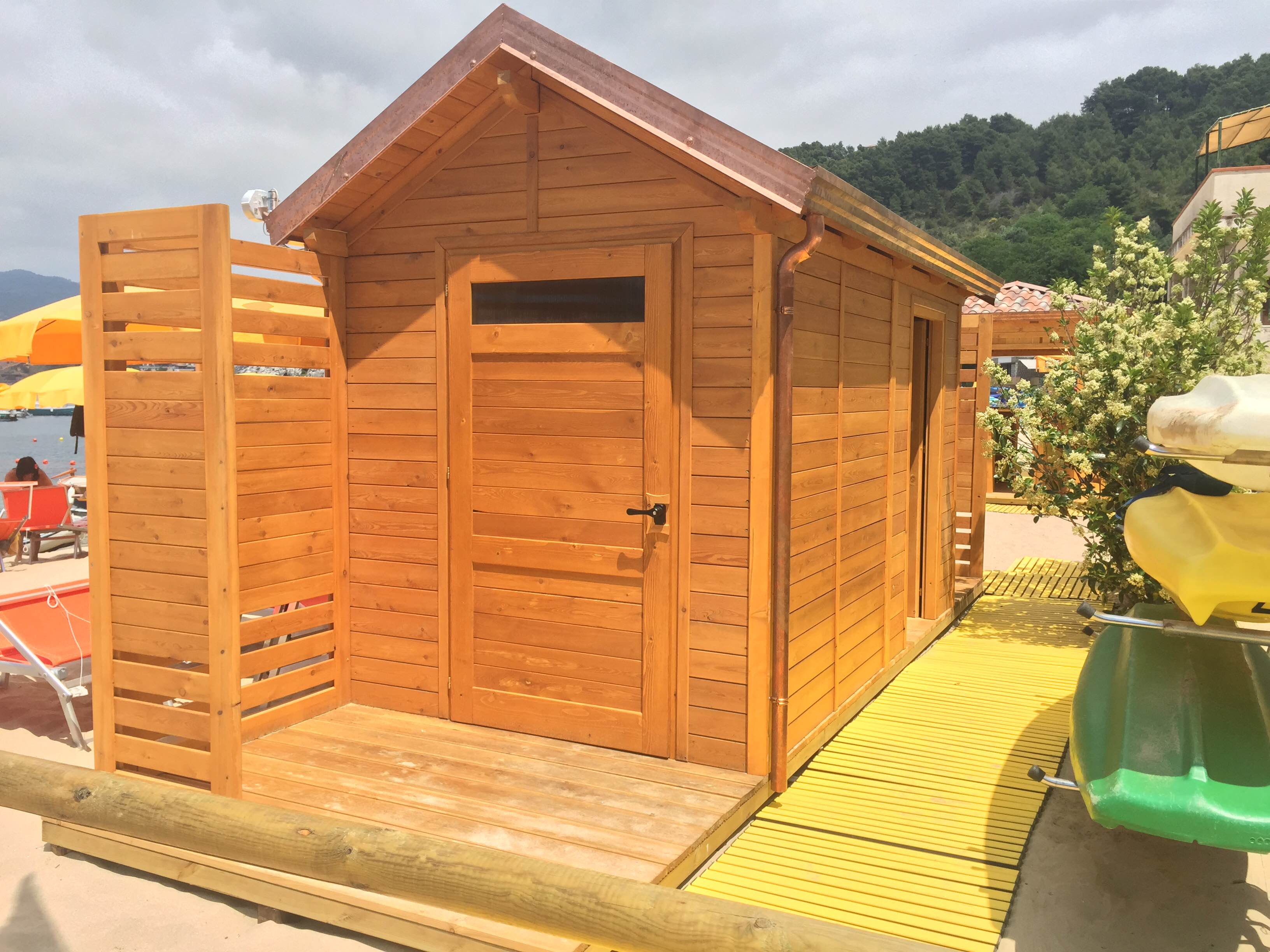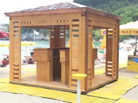 Oltre ai lidi in legno progettiamo e costruiamo con i nostri maestri artigiani esperti anche cabine, bagni, spogliatoi, bar, chioschi. Strutture per zone relax e tempo libero, naturalmente passerelle pedonali e per disabili in legno.