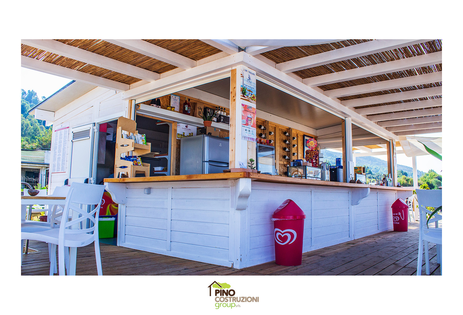 Dalla produzione di chioschi, bar, cabine in legno, strutture per zone relax e tempo libero, passerelle pedonabili in legno pregiati. Bordi piscine e rivestimenti idromassaggi, baby park, vari sono gli accessori per completare l’arredo balneare, mobili di design moderno in legno, baldacchini, ombrelloni, ombreggianti …
