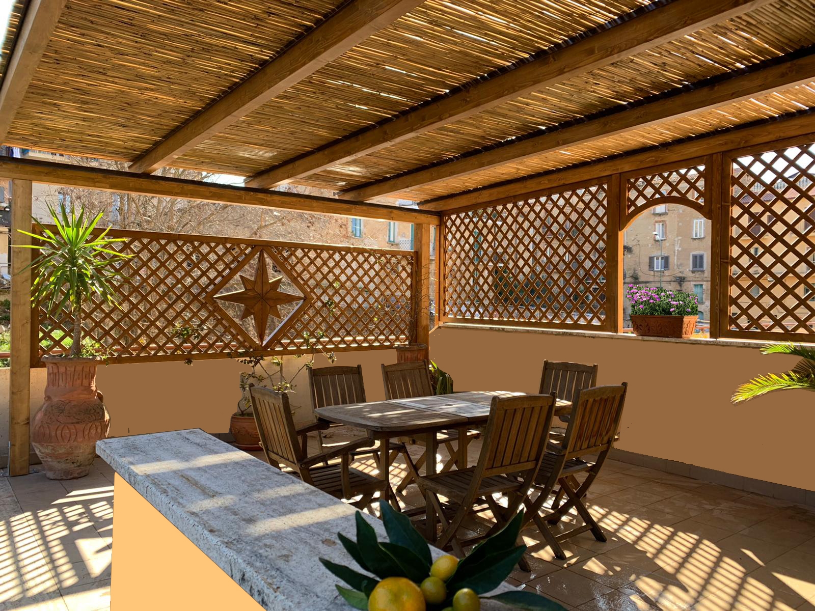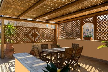 Rifinite con cura, le pergole in legno diventano così un’oasi di tranquillità. Da abbellire con decori in ferro battuto e completare con grigliati in linea con il design della struttura, un vero angolo di paradiso.